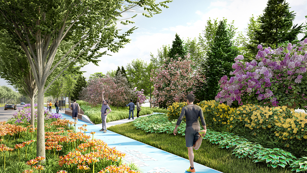 花乡街道在花园城市的建设中与上位政策及规划紧密衔接,积极响应了国家、北京市和区级层面要求。结合辖区重点道路,花乡街道精心打造了九条景观廊道,并细分为绿道、碧道和秀道三种类型,为居民和游客营造出多样化的休闲空间。同时,合理设置绿地,构建十个综合公园、若干社区公园及诸多小微绿地三类绿地体系,实现均衡覆盖。通过合理的规划布局,花乡街道构建出“九廊、三道、十园、多点”的可持续发展花园城市建设格局,不仅提升了城市颜值,更助力营造出宜居、宜游、宜业的花园城市典范,让居民生活品质与城市生态环境实现双提升。